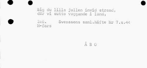 //// Sag du lilla jullen invid st r a n g 5 där vi sutto vaggande i land, //// ^ 3:6. Svenssons saml.häfte Nr 7.S.44 //// H-fors //// Å B O ////