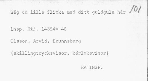 //// Säg du lilla flicka med ditt guldgula hår //// f //// insp• Rtj. 14384= 48 Olsson, Arvid, Brunnsberg (skillingtrycksvisor, kärleksvisor) //// RA INSP. | ////