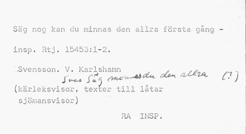 //// Säg nog kan du minnas den allra första gång. -insp. Rtj. 15453:1-2. //// /Svensson. V. Karlshamn , , //// j ^ & ^^ ^ ^ ^^ o) //// (kärleksvisor, texxer till låtar sjömansvisor) //// RA INSP. ////