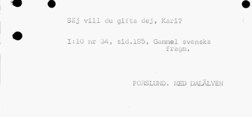 //// • 1 T i • rs \ l * i r • r^ //// Saj vill au gixta oej , Kan? i //// ^^ 1:10 nr 34, sid.185, Gammal svenska //// fragm. //// FORSLUND. MED DALÄLVEN ////