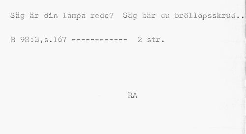 //// Säg är din lampa redo? Säg bär du bröllopsskrud.. B 98 : 3, s. 167--- 2 str. //// RA ////