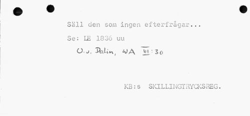 //// Säll den som ingen efterfrågar... //// Se: LE 1836 uu 0,J. Vedi //// k , AJ A ' : 3 o //// KB:s SKILLINGTRYCKSREG. ////