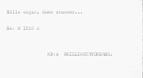 //// Sälla dagar, ömma stunder... //// i //// i. //// • M //// i //// Se: N 1810 d //// KB:s SKILLINGTRYCKSREG. ////