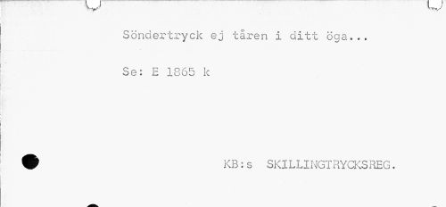 //// Söndertryck ej tåren i ditt öga... Se: E 1865 k //// 9 KB:s SKILLINGTRYCKSREG. ////