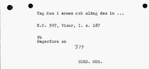 //// Tag dem i armen och släng dem in ... //// E.U. 597, Visor, I. s. 187 Vb //// Degerfors sn //// W //// NORD. MUS. ////