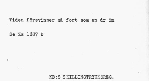 //// Tiden försvinner så fort som en dr öm //// Se Zz 1ÖÖ7 b //// ? //// t //// » //// KB:S S KILLINGTRYCKSREG. ////