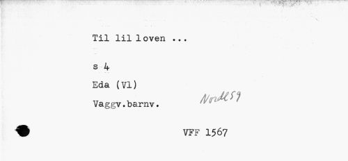//// ' - k , Til lil loven ... //// s 4 //// Eda (VI) Vaggv.barnv. //// ? VFF 1567 ////