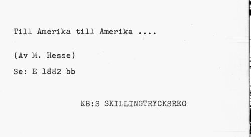 //// Till Amerika till Amerika .••. //// (Av M. Hesse) Se: E 1ÖÖ2 bb //// KB:S SKILLINGTRYCKSREG | ////