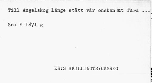 //// Till Ångelskog länge stått vår önskan ett fara ... //// Se: E 1Ö71 g //// KB:S SKILLINGTRYCKSREG | //// = ////