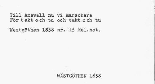 //// Till Axevall nu vi marschera För takt o ch tu och takt o ch tu //// Westgöthen 1Ö58 nr. 15 Mel.not. //// i* //// WÄSTGÖTHEM 1Ö5Ö ////