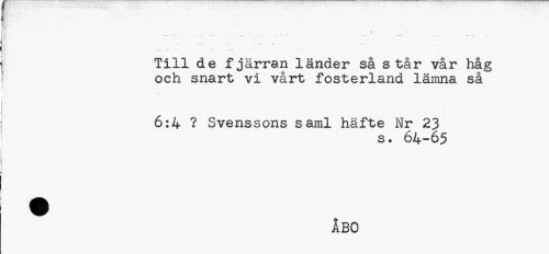 //// - • \ ***** " " "" - /-- //// Till de fjärran länder så står vår håg och snart vi vårt fosterland lämna så //// 6:4 ? Svenssons saml häfte Nr 23 //// s. 64-65 //// / //// ÅBO ////