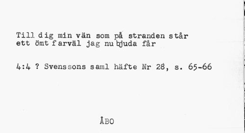//// Till dig min vän som på stranden står ett ömt farväl jag nu bjuda får //// ¦ //// 4:4 ? Svenssons saml häfte Nr 20, s. 65-66 ! //// ¦ //// i //// ÅBO ////