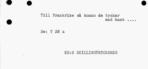//// Till Frankrike så kommo de tyskar ^ med hast ... //// Se: T 28 a //// KB:S SKILLINGTRYCKSREG ////
