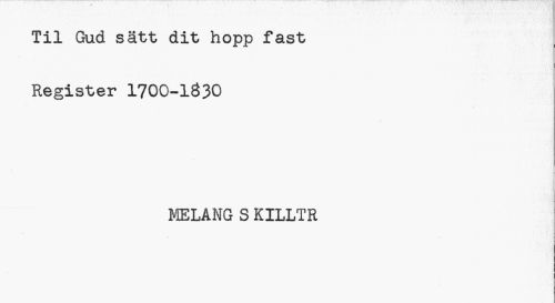 //// Til Gud sätt dit hopp fast //// Register 1700-1830 //// MELÅNG S KILLTR ////