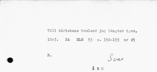 //// Till kärlekens hemland jag längtar igen, //// 10:7» NA SLS 53 s. 150-153 nr 45 //// N. n //// ÅBO ////