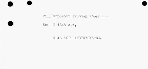 //// Till uppbrott trumman ropar .. ? ^ Se: E 1848 c,t, //// KB:S SKILLINGTRYCKSREG. ////