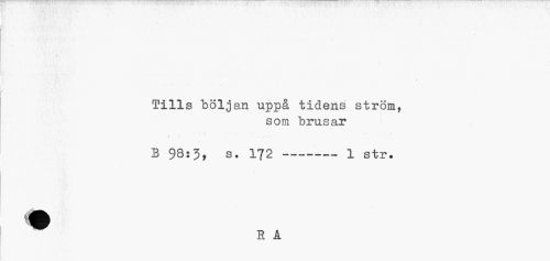 //// I //// Tills böljan uppå tidens ström, //// som brusar //// * • . • //// B 9B:J, s. 172---1 str. //// R A ////