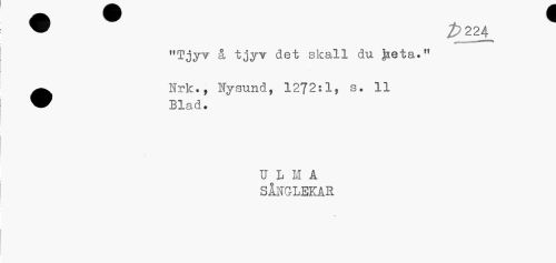 //// ® t> 224 //// "Tjyv å tjyv det skall du Jieta." //// •Nrk., Fysund, 1272:1, s. 11 Blad. //// UIIA SÅNGLEKAR ////