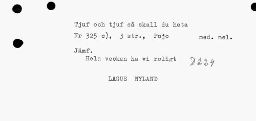 //// Tjuf och tjuf så skall du heta //// Nr 325 c), 3 str., Pojo med. mel. //// Jämf. //// Hela veckan ha vi roligt ty //// LAGUS NYLABTD ////