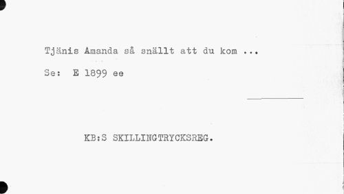//// T //// Tjanis Amanda så snällt att du kom ... Se: E 1899 ee //// t //// i //// i //// i //// f & //// l //// KB;S SKILLINGTBYCKSREG. //// i //// k . ////