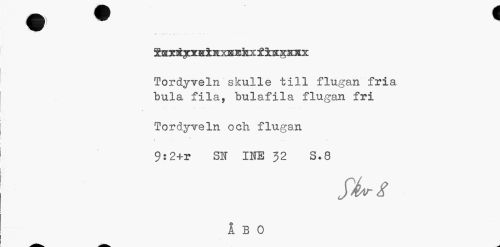 //// Tordyveln skulle till flugan fria bula fila, bulafila flugan fri //// Tordyveln och flugan //// ... i //// 9:2+r SN INE J2 S.8 //// 1 BO ////