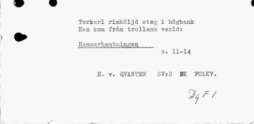 //// Torkarl rimhöljd steg i högbank Han kom från trollens verld: //// Hammarhemtningen //// M.frU»...|l ...Ji-Lmwn ...WU ... //// s. 11-14 //// E. t. QVANTBN SYiS SK FOLKY. //// Ijf/ ////
