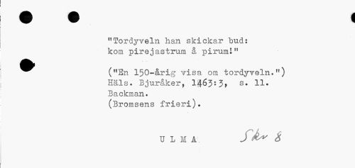 //// "Tordyveln han skickar "bud: kom pirejastrum å piruml" //// ^^ (tfEn 150-årig visa om tordyveln.rt) //// Häls. Bjuråker, l^öjsj» Il-Backman. //// (Bromsens frieri). //// ULM A ////