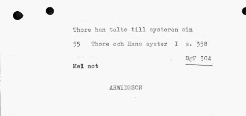 //// Thore han talte till systeren sin //// * - • //// 55 Thore och Hans syster I s. 358 //// ...DgF 304 //// Mel not -- //// ÅRWIDSSOH" //// v ////