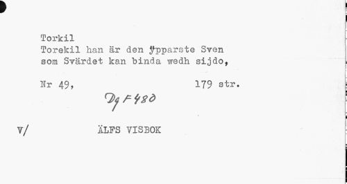 //// Torkil //// Torekil han är den jfpparste Sven som Svärdet kan binda wedh sijdo, //// ... .t I //// Hr 49, 179 str. [ //// i //// V/ ALFS VISBOK //// ¦ ////