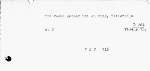 //// Tre raska gossar uti en ring, falleralla //// D 264 //// s. 8 Tådéne Vg. //// V F F 716 //// 9 ////