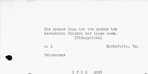 //// Tre rynkor fram och tre rynkor bak bortskämda flickor har ingen smak» //// (Slängpolska) //// - - 4. • , ' - //// s. 1 Kyrkefalla, Tg. //// ^^^ Polsketext ////
