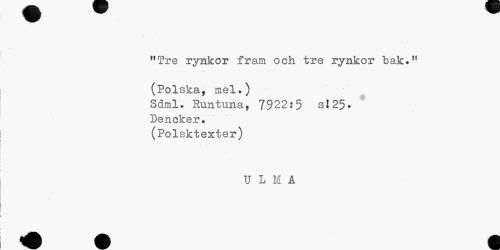 //// 4 //// "Tre rynkor fram och tre rynkor bak." (Polska, mel.) //// Sdml. Runtuna, 7922:5 si 25- //// Denclcer. //// (Polsktexter) //// U L M A ////