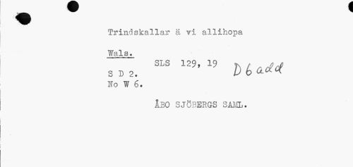 //// Trindskallar ä ?i allihopa Val g. //// 8 D 2. S1S 129' 19 D é Arfrf //// IT o W 6. //// ÅBO SJÖBERGS SAML. ////
