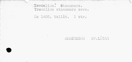 //// YTrudeliduf Stannmora. Trudelidu stannmora sova. //// Da 14085 Vallat 5 1 str. //// * //// ANDERSSON SV.LÅTAR ////