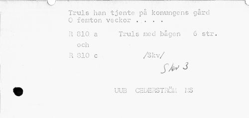 //// - • //// Truls han tjente på konungens gård O femton veckor ... . . //// R 310. a Truls med bågen 6 str. och //// R 310 c /Skv/ //// ^ UUB CEDERSTRÖM MS ////