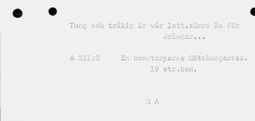 //// Tung och tråkig är vår lott,sämre än för //// C. ..L C- i i U cl ..I? • # • //// A 211:2 En bonotorpares Göteborgsresa. //// 19 str.kom. //// R A ////