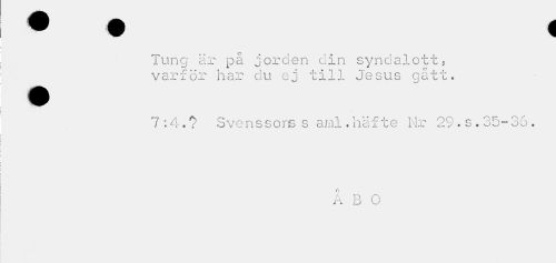 //// Tung är på jorden din syndalott , varför har du ej till Jesus gått. //// 7:4.? Svenssonss aml.häfte Nr 29.s.35-36. //// Å B O ////