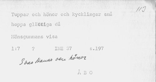 //// ¦¦ ; ¦ - - - * . - - " ... v..r ' .^m //// //O //// Tuppar och hönor och kycklingar sma hoppa glättiga då //// Hönsgummans visa //// 1:7 ? INE 37 s.197 //// ÅBO ////