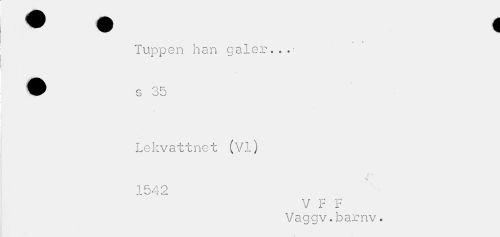 //// t //// Tuppen han galer..- //// Q ^ R //// O O w //// Lekvattnet (VI) //// A; //// •v' //// 1542 //// V F F //// Vaggv.barnv. ////
