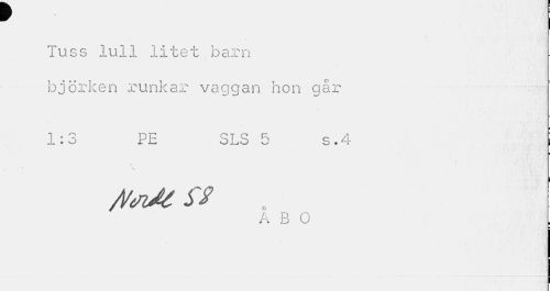 //// r //// Tuss lull litet barn björken runkar vaggan hon går //// 1:3 PE SLS 5 s.4 i //// ¦ //// ¦ ^ //// jfoe sy //// A B O ////