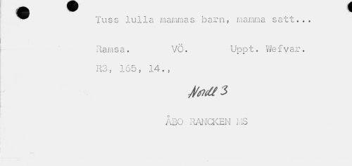 //// ^^ Tuss lulla mammas barn, mamma satt... //// Rams a. VÖ. Uppt. Wefvar. //// Il O TAR 1/1 //// r\o ? JLOO , J.H-. ? //// ÅBO RANCKEN MS ////