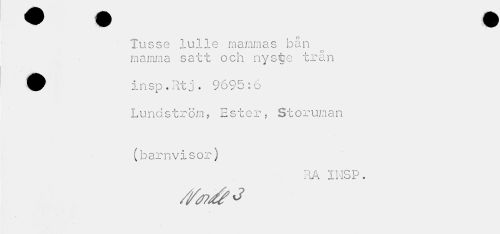 //// Tusse lulle mammas bån mamma satt och nyste trån //// ^(m insp . Ht j . 9695 :6 //// Lundström, Ester, Storuman //// (barnvisor) //// RA INSP. ////