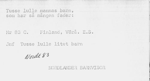 //// Tusse lulle mammas barn, som har så mången fader; //// Nr 83 C. Finland? Vörå. E.S. Jmf Tusse lulle litet barn //// NORDLANDER BARNVISOR //// ¦ ////