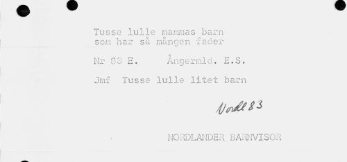 //// Tusse lulle mammas barn som har så maneten fader //// w/ //// o //// Nr 83 E. Angermld. E.S. Jmf Tusse lulle litet barn //// /VcnsMt* //// NORDLANDER BARNVISOR ////