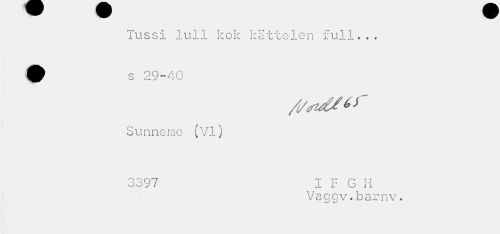 //// Tussi lull kok katte-len full... Sunnemo (VI) //// 3397 I F G H //// Vaggv.barnv. ////