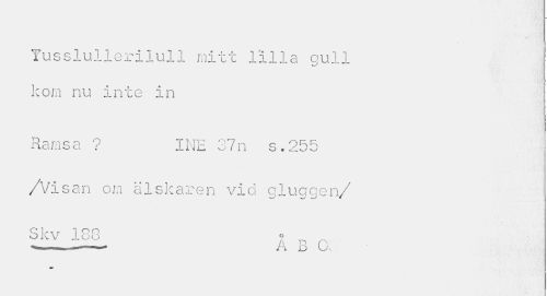 //// Yusslullerilull mitt lilla gull kom nu inte in //// Ramsa ? INE 37n s.255 //// /Visan om älskaren vid gluggen/ Slev 188 • ////