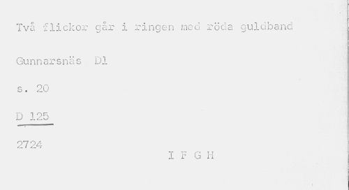 //// Två flickor går i ringen med röda guldband //// Gunnarsnäs Dl s. 20 //// D 125 ? //// 27 24 //// I F G H //// \ ////
