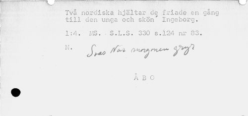 //// Två nordiska hjältar de friade en gång till den unga och skön Ingeborg. //// 1:4. MS. ¦ S.L.S. 330 s.124 nr 83. //// ÅBO ////