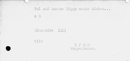//// Två små hundar ligga under bänken... //// O Q //// S o //// Ränneslöv (Hl) //// 5113 //// I F G Ii //// •Vaggv.barnv. ////