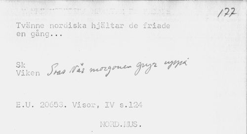 //// • . - . .„ -4 'Jr '^L. Jw»1 //// Tvänne nordiska hjältar de friade en gång..c //// Vi k e n u pr ^ //// fl //// E.U, 20653. Visor, IV s.124 //// NORD. I. T(JS . //// 4 ////